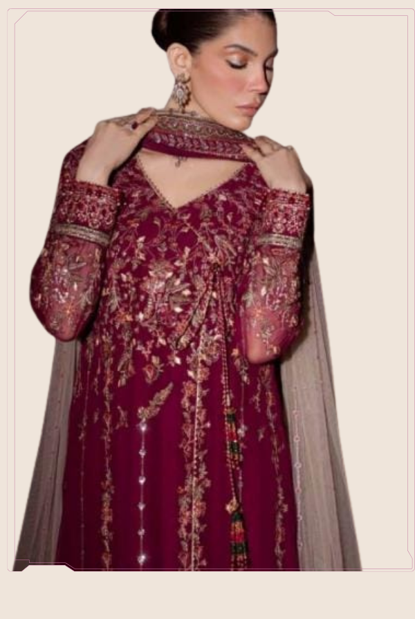 Elaya Unstitched Formals: Experience royal elegance! Dive into our stunning chiffon collection, where intricate handwork & luxurious embroidery come together to make you feel like royalty. Perfect for making a statement!