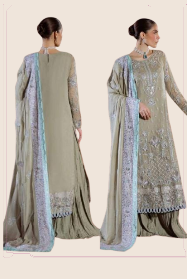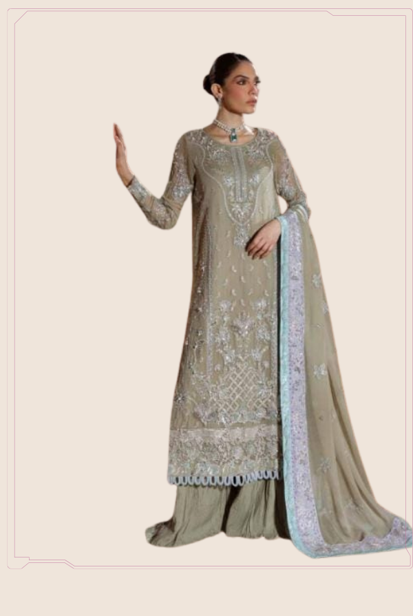 Elaya Unstitched Formals: Experience royal elegance! Dive into our stunning chiffon collection, where intricate handwork & luxurious embroidery come together to make you feel like royalty. Perfect for making a statement!